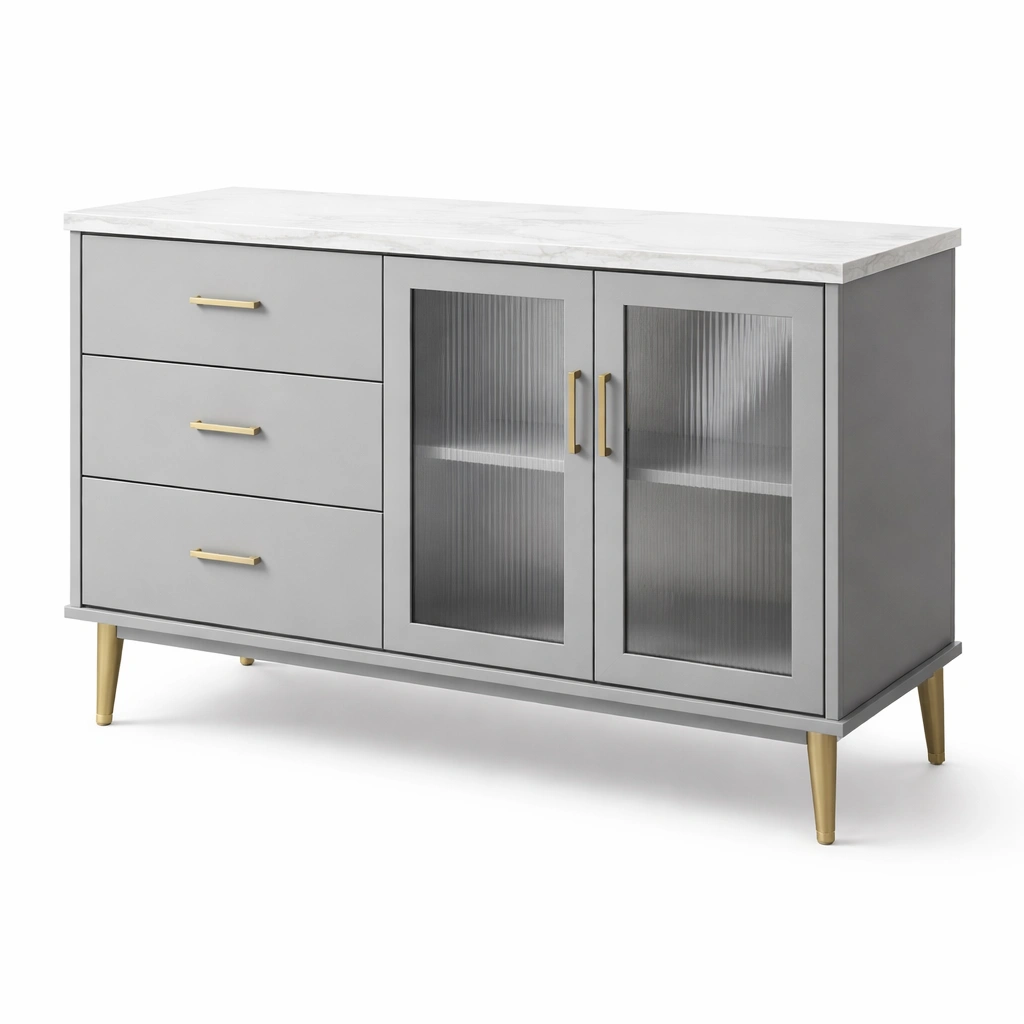 Sideboard MDF mit Glastüren Grau 154x43x71 cm