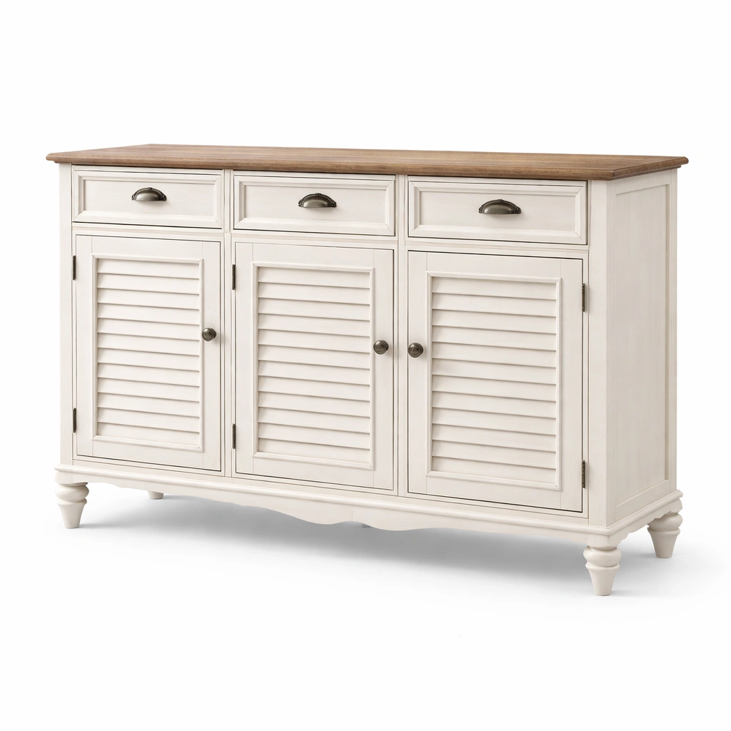 Sideboard Holz Weiß mit Schubladen und Lamellentüren