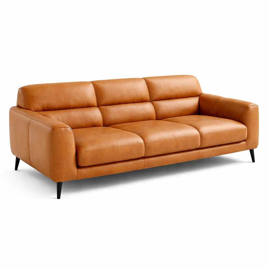 Bezug: Echtes Leder. Gestell: Massivholz. Beine: Metall.
