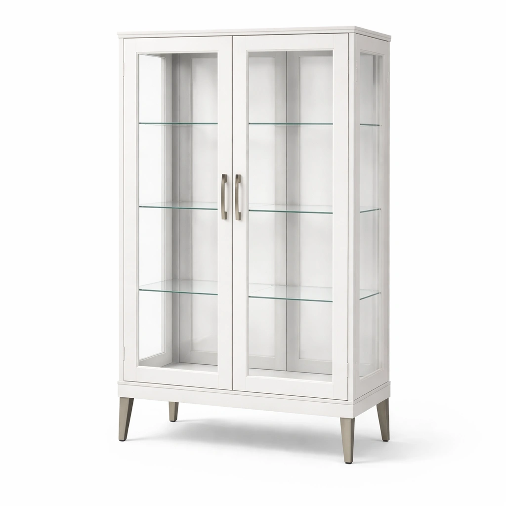 Vitrine Weiß MDF mit Glasregalen und Metallbacken